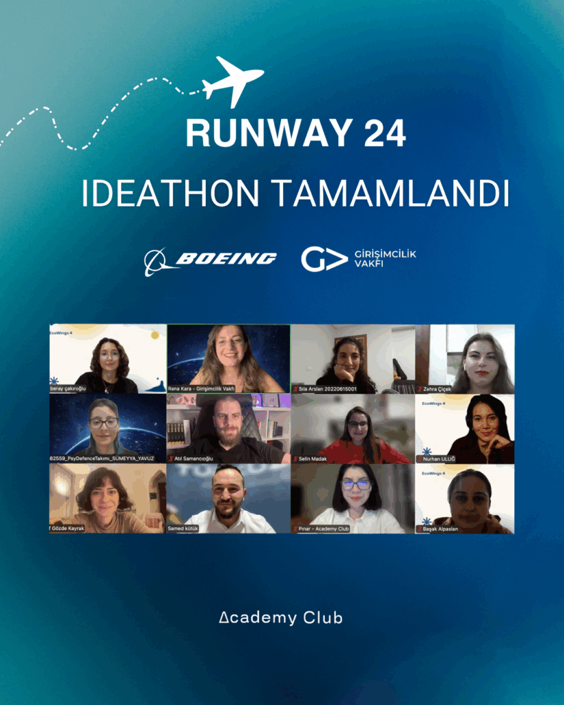 Boeing ve Girişimcilik Vakfı iş birliği ile gerçekleştirilen Runway 24 programının son aşaması olan ıdeathon sürecine Academy Club olarak ortak olduk.